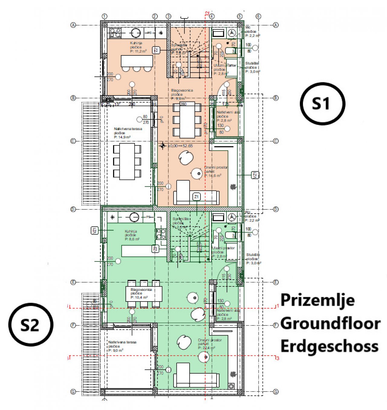 Dom S2 o powierzchni użytkowej netto 138,98 m² rozłożony jest na dwóch kondygnacjach: parterze i pierwszym piętrze. Dwukondygnacyjna konstrukcja zapewnia większy komfort i naturalne oddzielenie strefy dziennej od nocnej. Na parterze znajduje się zadaszone wejście, hol wejściowy, spiżarnia, oddzielna toaleta oraz otwarta kuchnia z jadalnią i salonem, z którego prowadzi bezpośrednie wyjście na zadaszony taras i prywatny ogród. Ta przestrzeń zewnętrzna oferuje idealne miejsce na rodzinne grille, relaks w słońcu i możliwość zbudowania własnego basenu.…