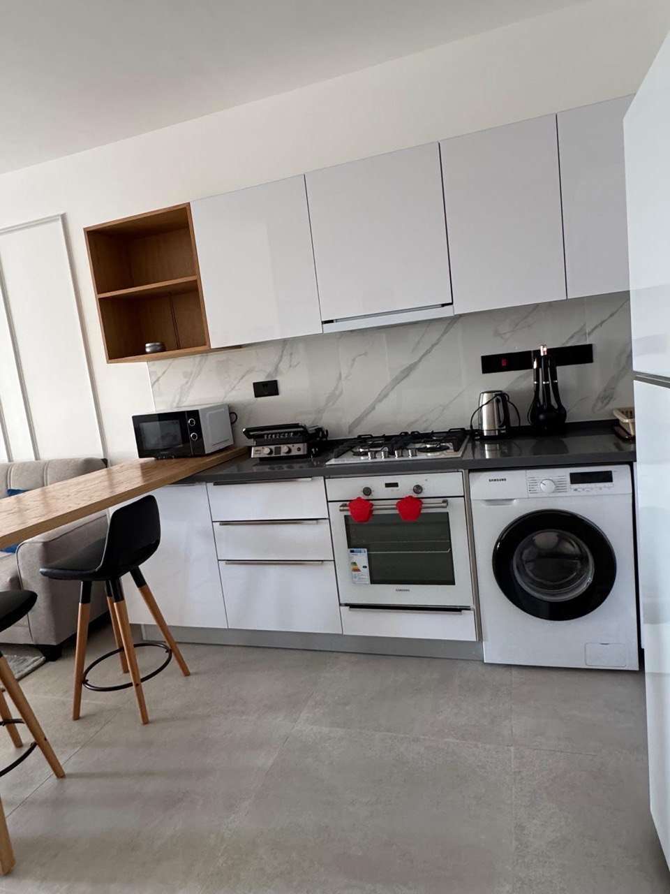 Wnętrze zostało zaprojektowane z naciskiem na praktyczność i komfort – wielkoformatowe okna, nowoczesne wykończenia i efektywne rozwiązania aranżacyjne zapewniają przyjemną atmosferę przez cały rok. Mieszkańcy mają dostęp do zagospodarowanego wspólnego basenu, prywatnej komunikacji wewnętrznej oraz parkingu dla mieszkańców i gości. Budynek został zaprojektowany z myślą o efektywności energetycznej i długofalowej zrównoważoności.