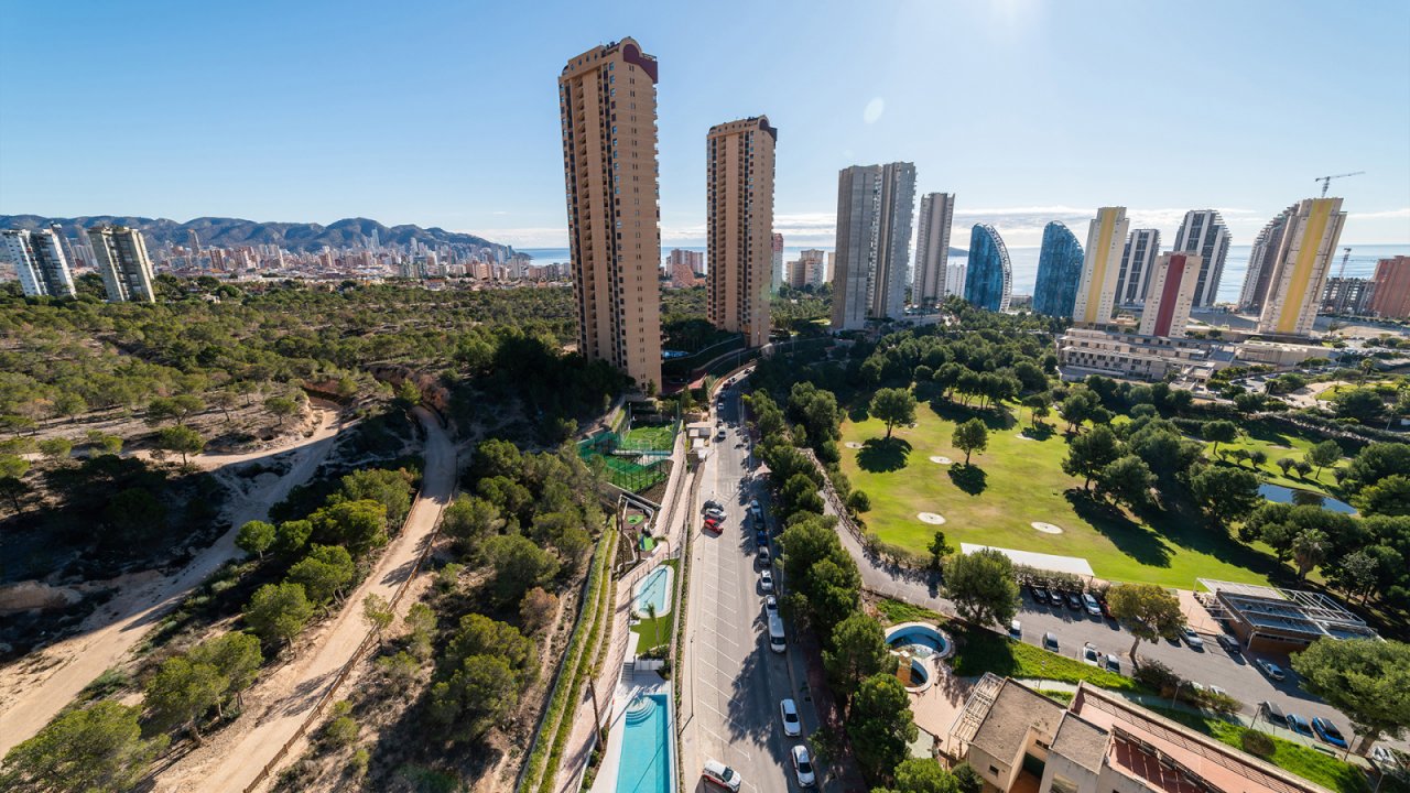 Lokalizacja oferuje idealne połączenie dostępności i prywatności. Plaża Poniente jest oddalona o zaledwie kilka minut, pole golfowe znajduje się tuż obok, a wszystkie usługi, restauracje i sklepy są w zasięgu ręki. Benidorm oferuje energię życia przez cały rok, zróżnicowaną gastronomię i szeroki wachlarz możliwości spędzania wolnego czasu. Dzięki połączeniu z głównymi drogami N-332 i AP7, nieruchomość jest łatwo dostępna z lotniska i innych części wybrzeża.
