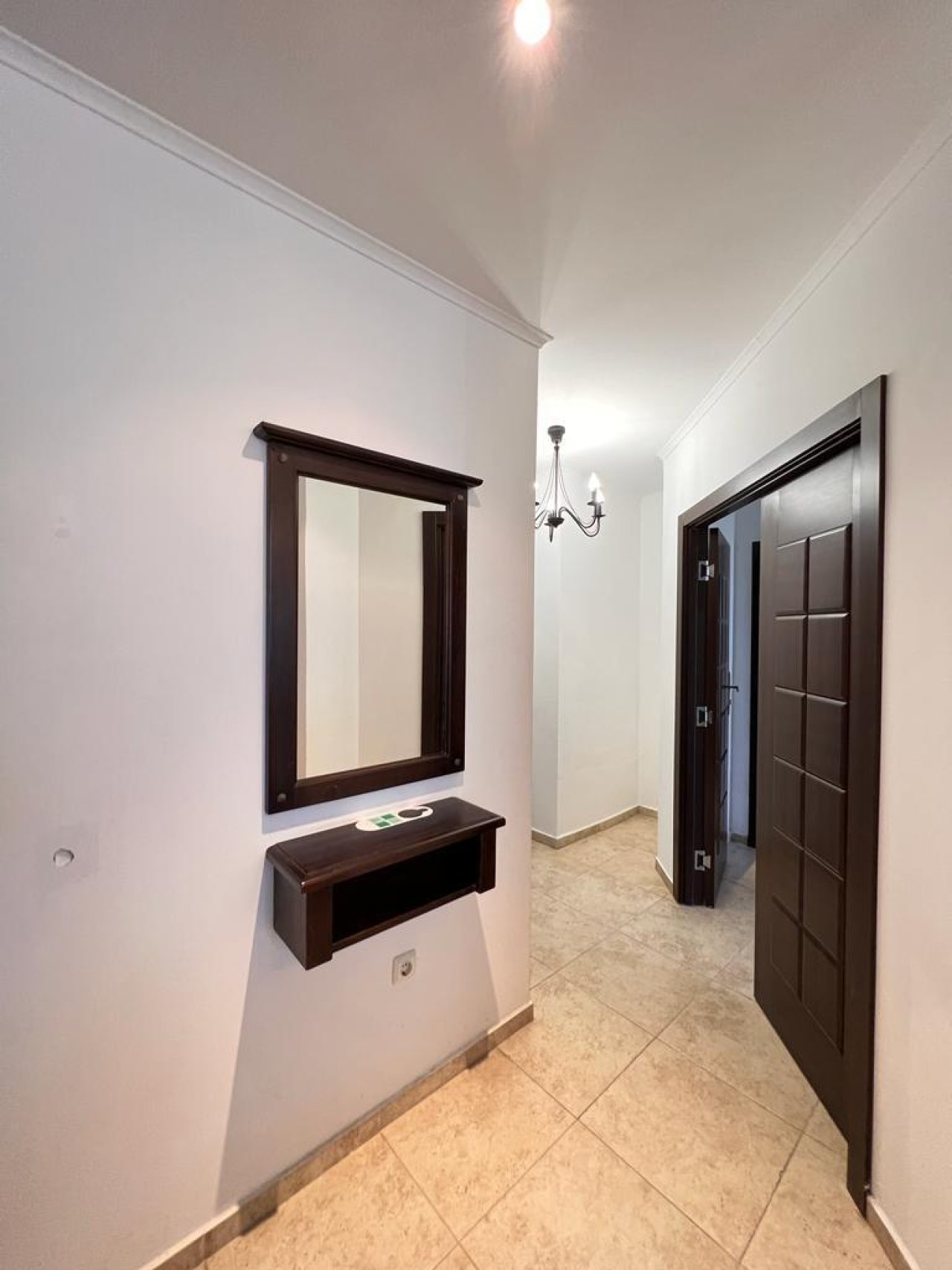 Квартира полностью меблирована и оснащена качественной мебелью и бытовой техникой, готова к заселению. Она состоит из прихожей, большой гостиной с кухонной зоной и столовой, одной спальни, ванной комнаты с туалетом и душевой кабиной, другой спальни с ванной комнатой и туалетом с ванной, а также террасы с боковым видом на море и ухоженным двором.