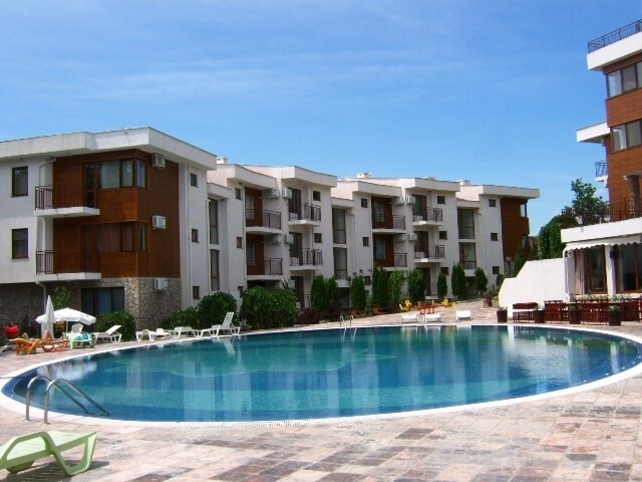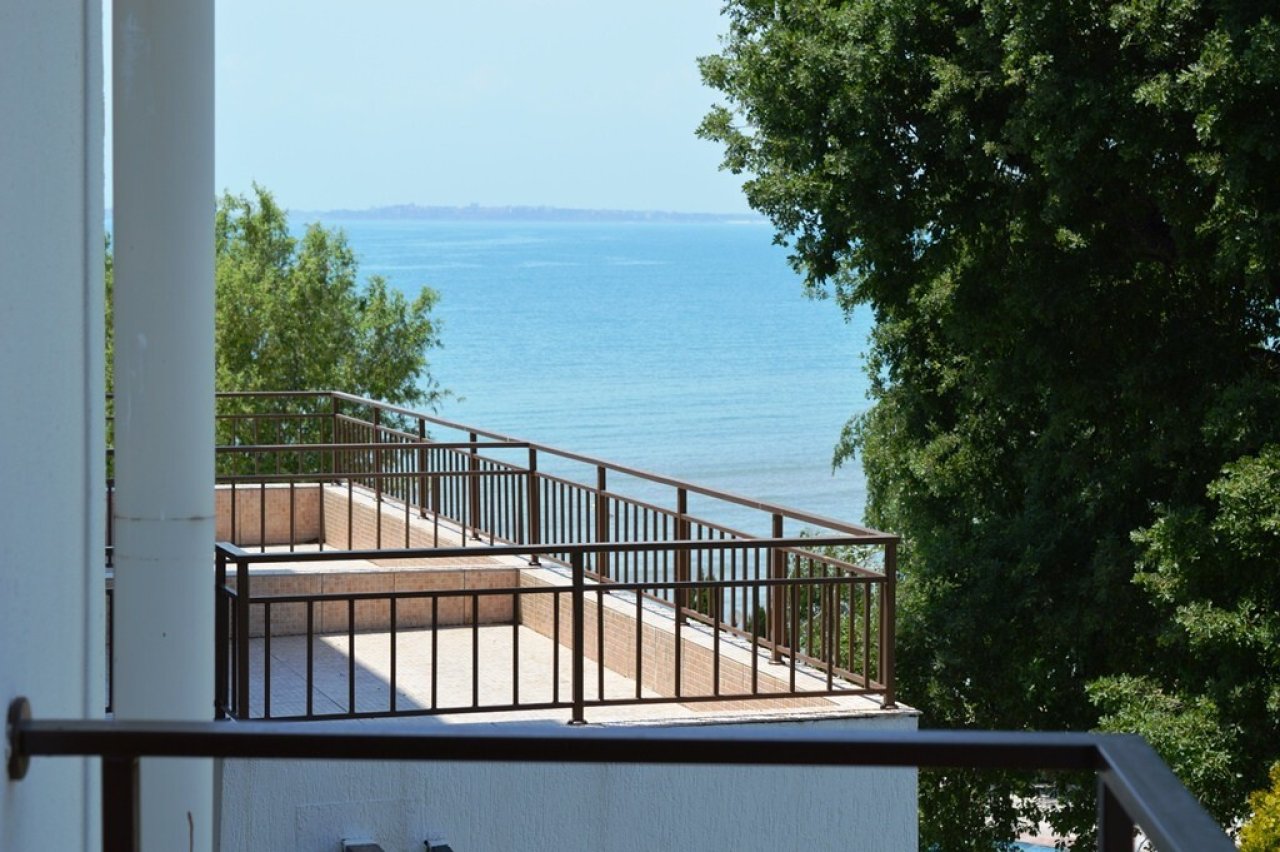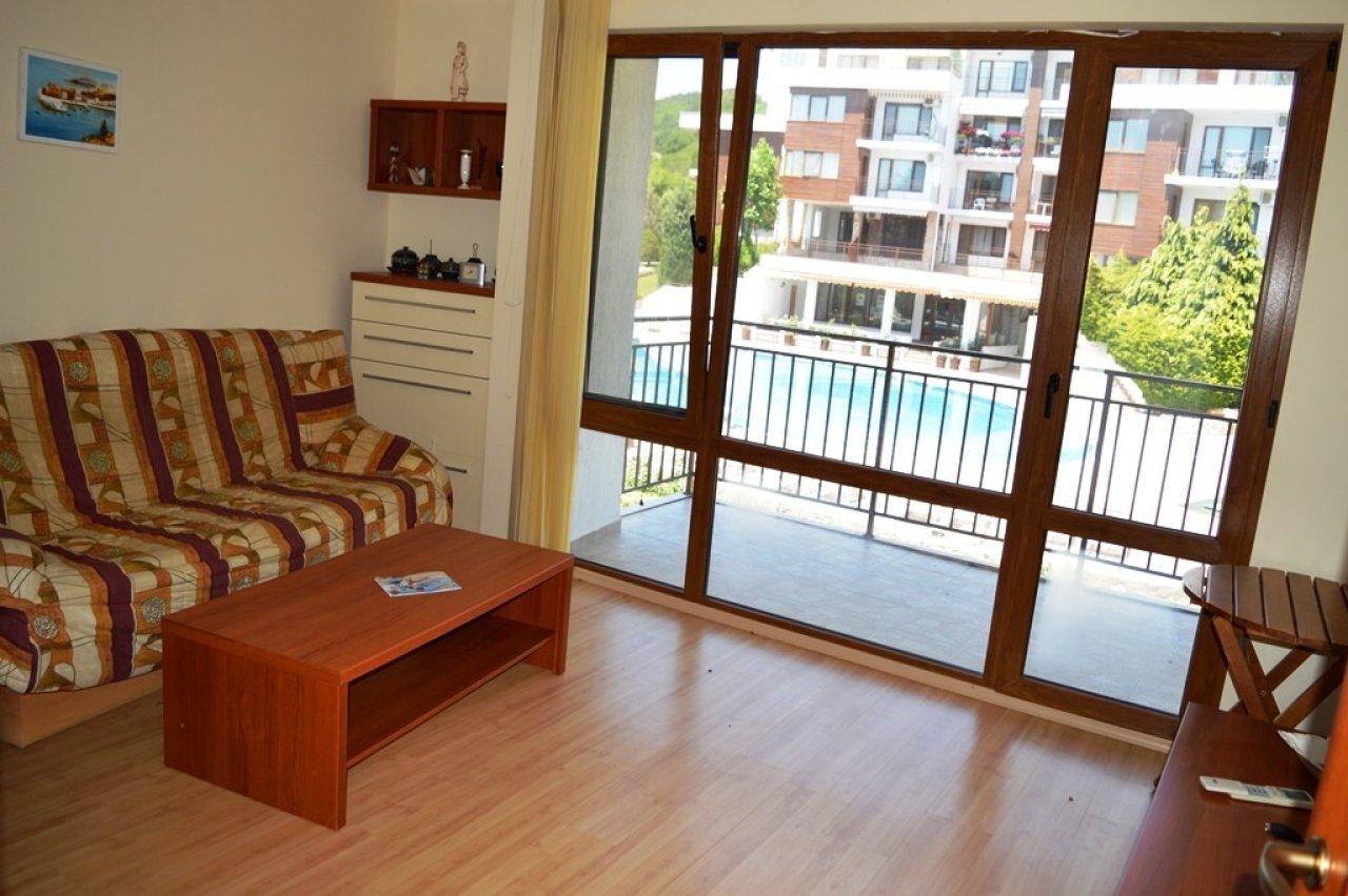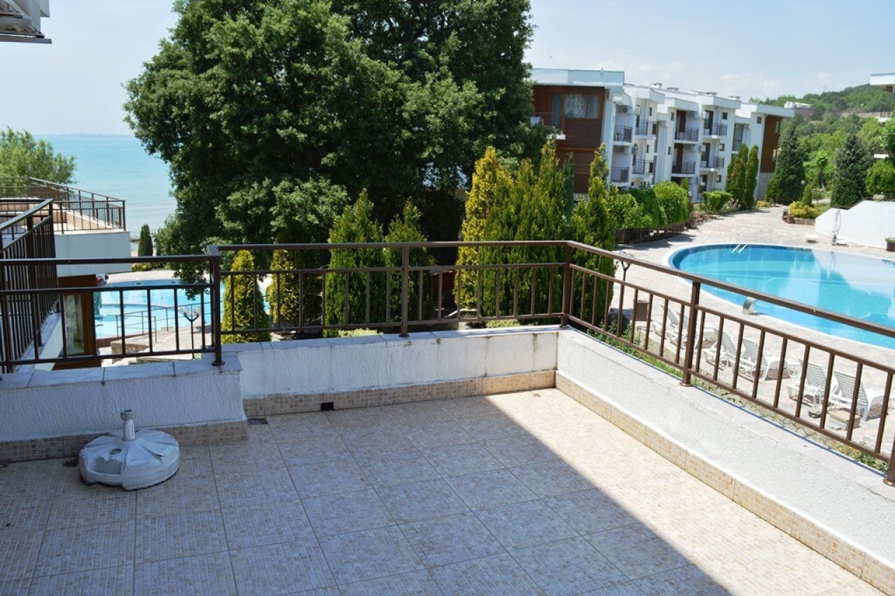 Мы предлагаем вам 3-комнатную квартиру с видом на море и бассейн в Messambria Fort Beach, первой линии в Элените, Болгария.