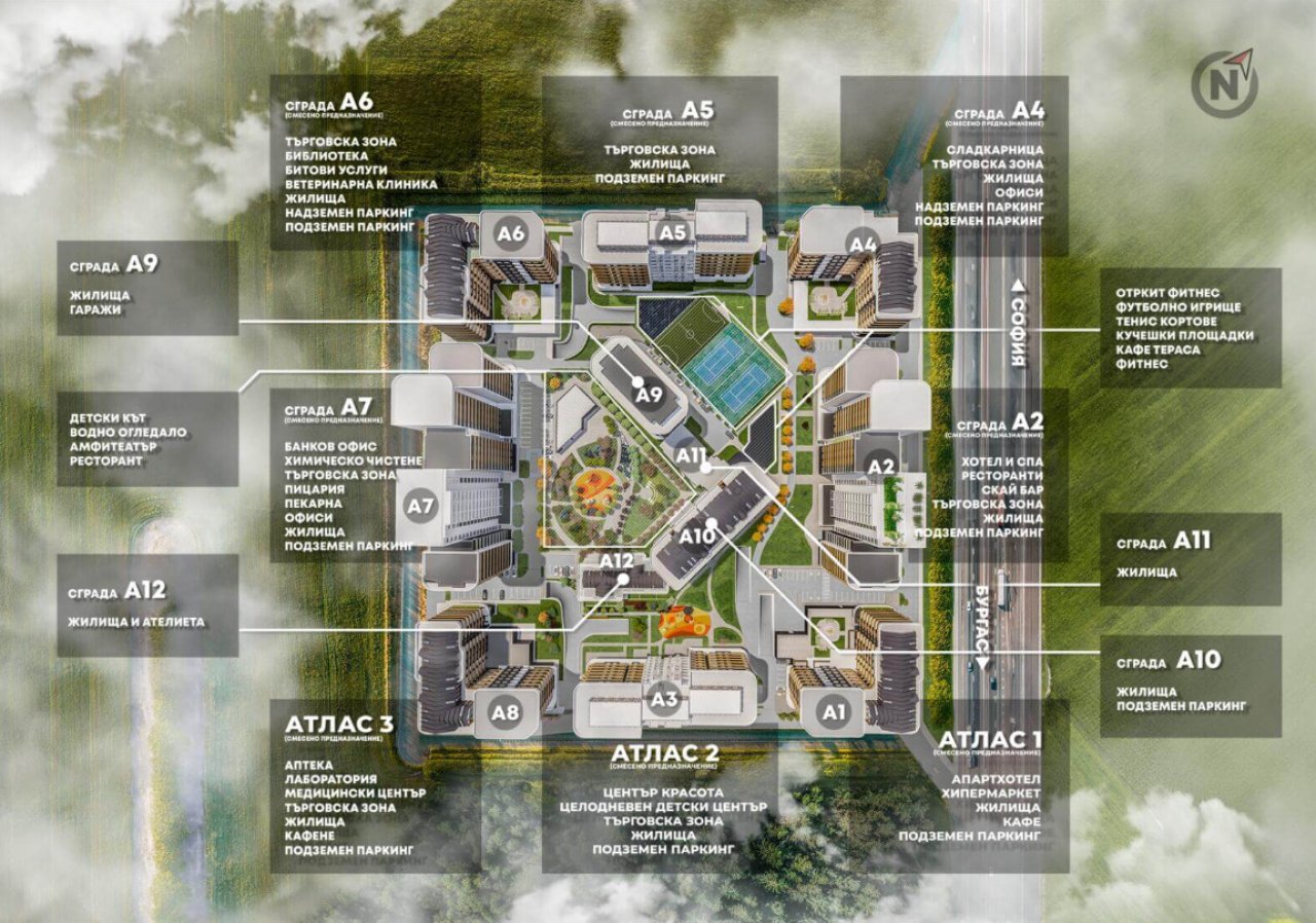 Добро пожаловать в жилой комплекс Atlas III — новейший этап развития района Азимут в Бургасе. Этот архитектурно продуманный новый проект был создан с особым вниманием к современному стилю жизни и предлагает комплексную среду для проживания и работы — в гармонии с динамичным ритмом и городским видением квартала.