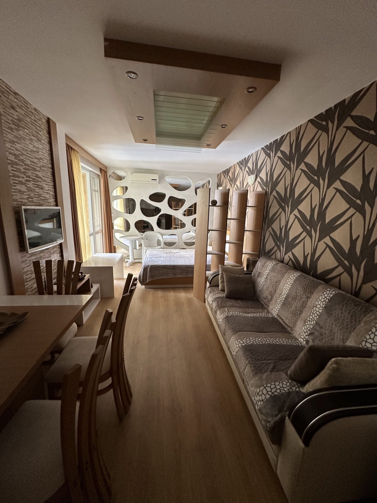 Этот уютный студийный апартамент площадью 45 м² расположен на втором этаже популярного жилого комплекса Sweet Home 2 в курортном городе Солнечный берег на болгарском черноморском побережье. Квартира выполнена с высоким качеством мебели и предлагает комфортную и ухоженную жилую атмосферу.