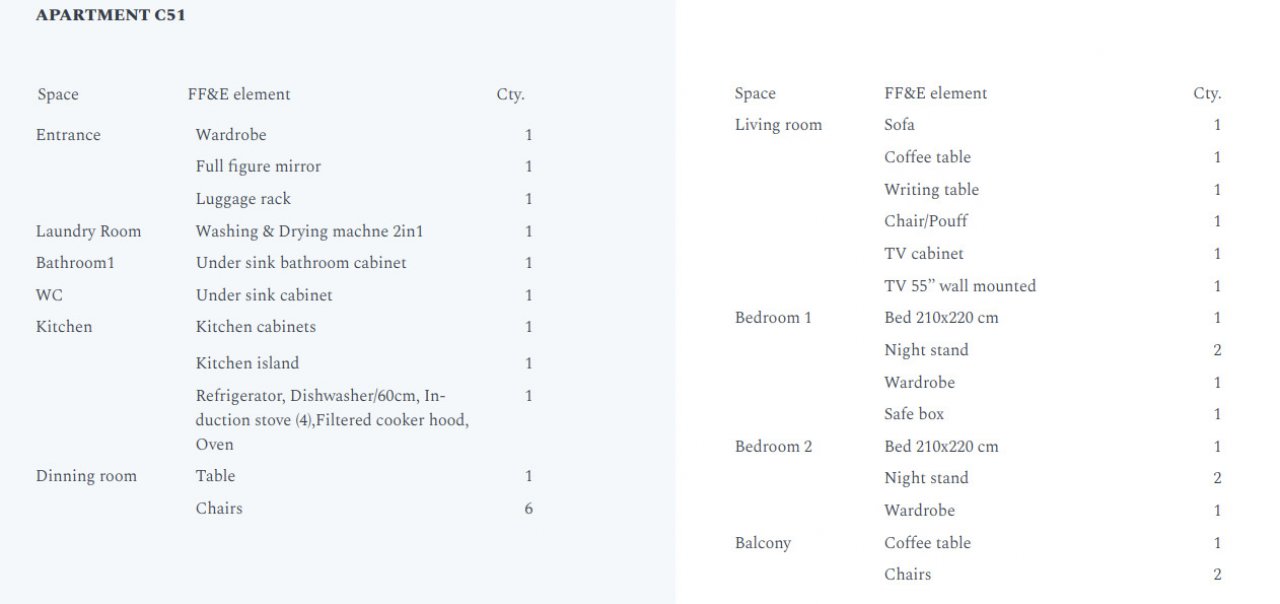 Общая площадь квартиры составляет 88,8 м², включая просторную террасу площадью 19,20 м² с захватывающим видом на Адриатическое море. Интерьер полностью обставлен современной высококачественной мебелью, подчеркивающей стиль и комфорт проживания.