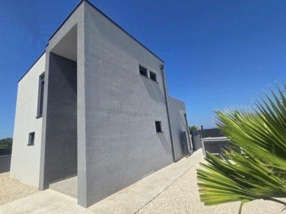 В тихой части поселка Врси, в живописном местечке Жукве, расположен современный дом с собственным бассейном, примерно в 400 метрах от моря. Это место давно пользуется популярностью благодаря своей спокойной атмосфере, близости к пляжам и удобному расположению, что делает его идеальным как для собственного проживания, так и для сдачи в аренду на время отдыха.