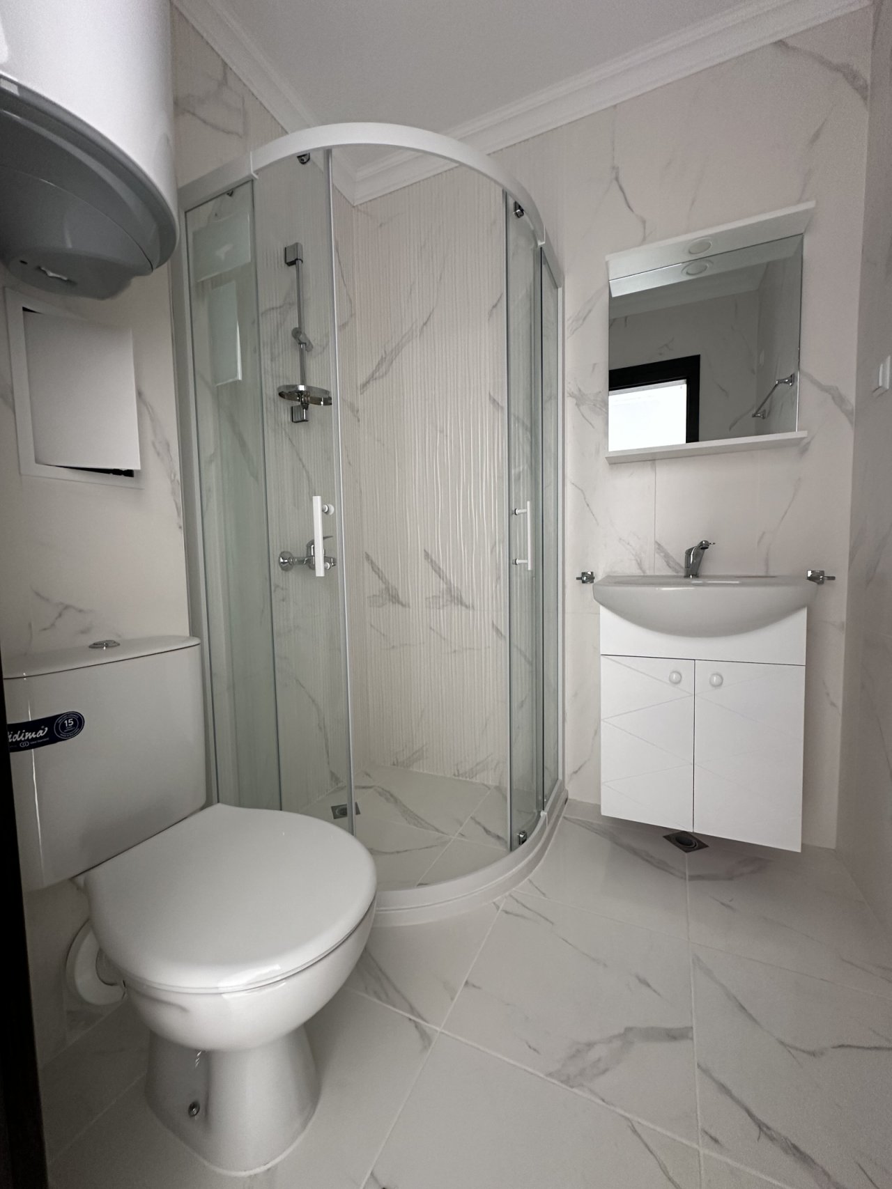 Планировка включает жилую и спальную зоны, встроенную кухонную нишу, ванную комнату и балкон с видом на море. Большие окна обеспечивают яркое освещение и приятную атмосферу в жилом помещении.
