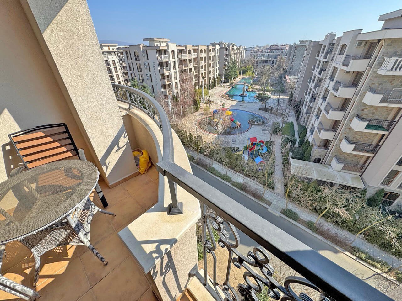 На продажу выставлена красивая двухкомнатная квартира с видом на бассейн в эксклюзивном комплексе Cascadas 15 в Солнечном Берегу, Болгария.