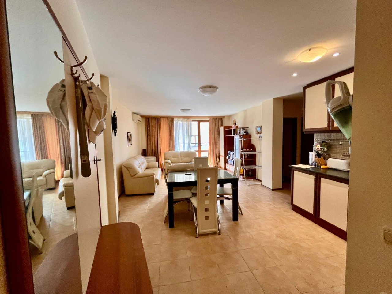 На продажу предлагается просторная трехкомнатная квартира в комплексе Sunny Victory, расположенном в северной части курорта Солнечный берег. Комплекс находится всего в 300 метрах от пляжа и в 150 метрах от недавно открытого магазина Lidl, что обеспечивает комфортное проживание и расслабленный отдых.