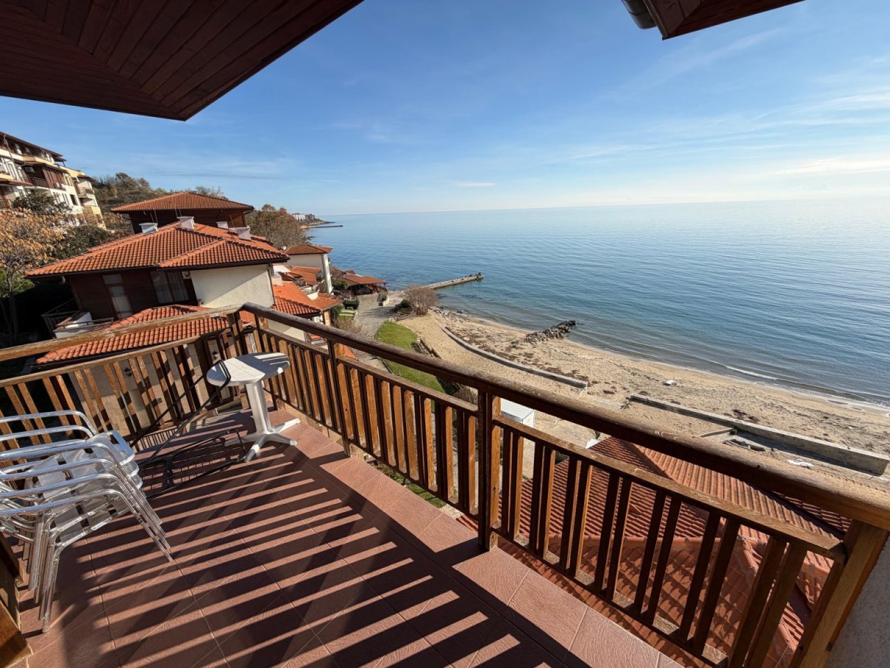 Балкон идеально подходит для утреннего кофе или вечернего отдыха, с местом для садовой мебели, чтобы наслаждаться видом на море и свежим морским воздухом.