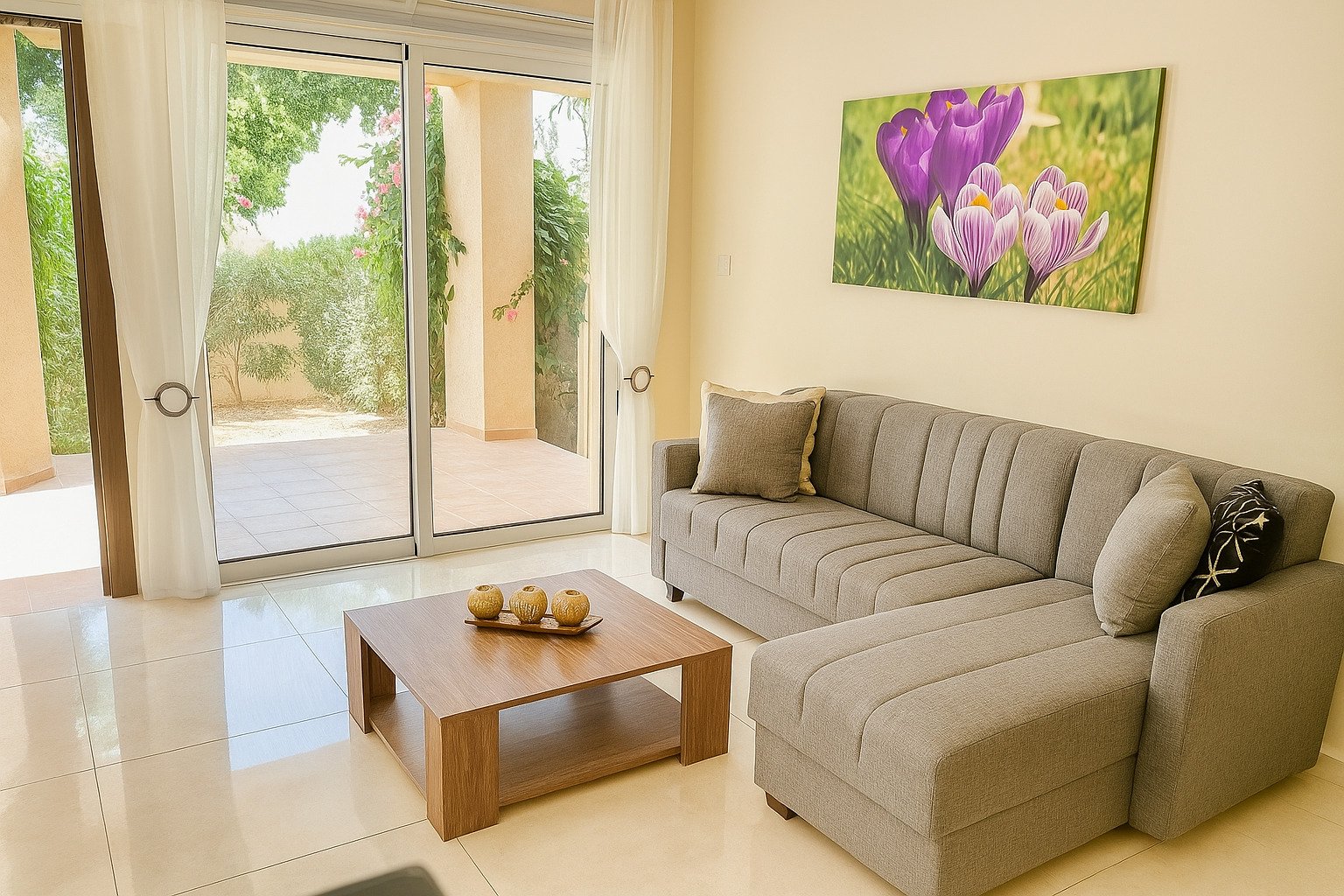 Благодаря своему расположению, недвижимость предлагает не только близость к морю, но и удобную транспортную доступность к ключевым точкам — центр Пафоса находится примерно в 1 км, а международный аэропорт — примерно в 10 км. Таким образом, местоположение сочетает в себе прибрежный образ жизни с удобной доступностью инфраструктуры.